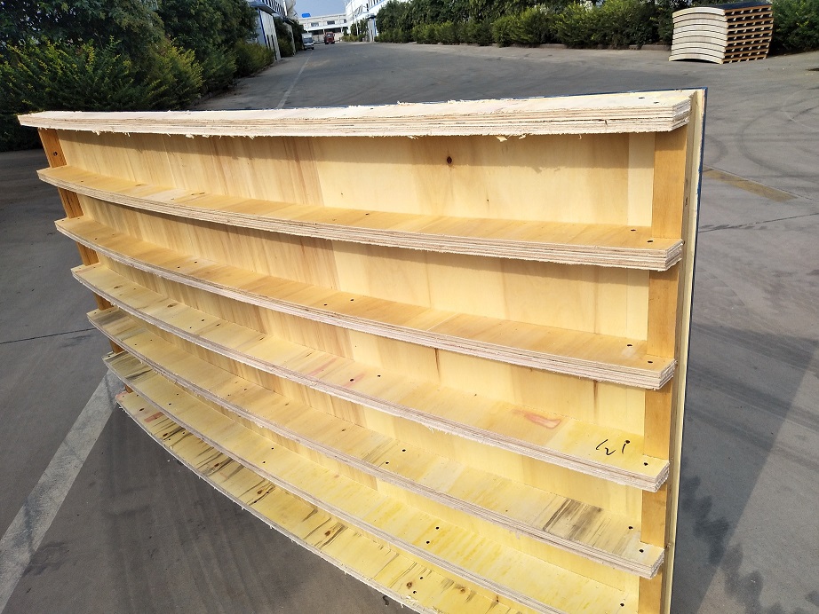 El encofrado de tanques Shandong Zeemo se compone principalmente de paneles, quillas y accesorios de conexión. El panel está fabricado de madera contrachapada de 15 mm y la superficie está recubierta de plástico. Se presiona mediante tecnología especial según diferentes curvaturas. Para fortalecer su resistencia a la compresión durante el uso, la viga está unida a la parte posterior del panel. La viga está hecha de tablero laminado (LVL) de 100*40 mm según la curvatura del panel. La separación entre las vigas superior e inferior es de 200 mm. Finalmente se ensamblan y conectan los paneles uno a uno según los dibujos. El tamaño máximo del panel puede ser de 1220*2440 mm y el diámetro se personaliza según el proyecto del cliente. Por lo tanto, Shandong Zeemo Tank Formwork también tiene las ventajas de ser liviano, de bajo precio y de personalización gratuita.